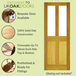 Please note that all of our doors are initially unfinished (unless otherwise stated), allowing you to choose a finish to your liking. The doors displayed on our website vary in appearance due to the different finishes being used by ourselves and customers alike; in addition to the natural qualities of the wood, this will also contribute to the door’s appearance. All hinges, handles, levers, and door accessories are for illustration purposes only and sold separately. We cannot guarantee an exact match to images used across our door product imagery for the reasons stated above. This door is made from multiple pieces of oak for greater stability.